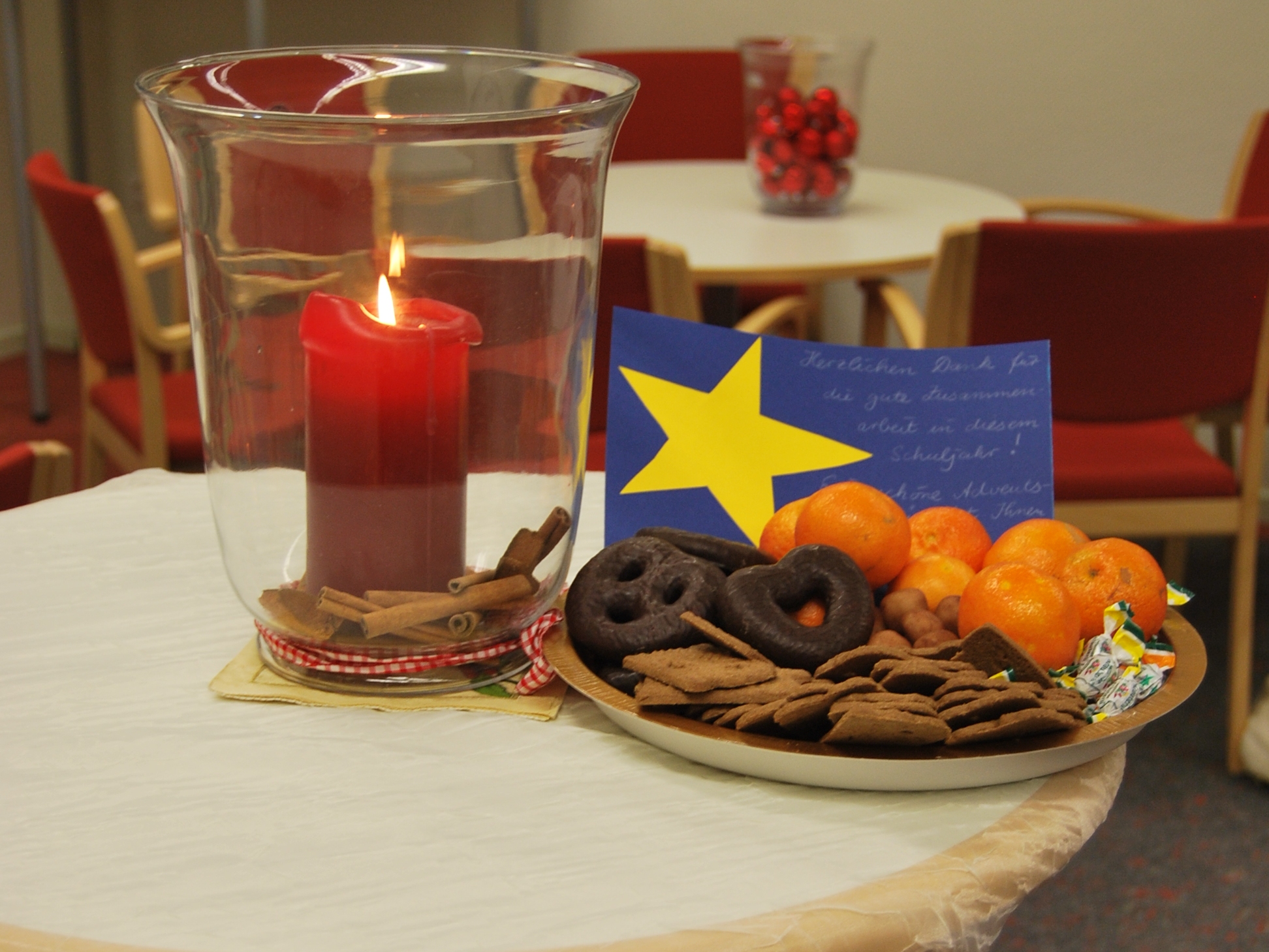 Im Namen des Schulvereins des GaW bedankte sich Claudia Kieselbach-Reba Anfang Dezember bei allen LehrerInnen, den Hausmeistern, den Mitarbeiterinnen im Sekretariat sowie der Bibliothek mit bunten Adventstellern für die gute Zusammenarbeit im Jahr 2014.